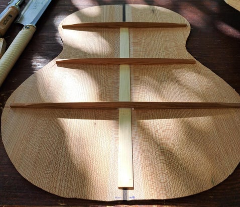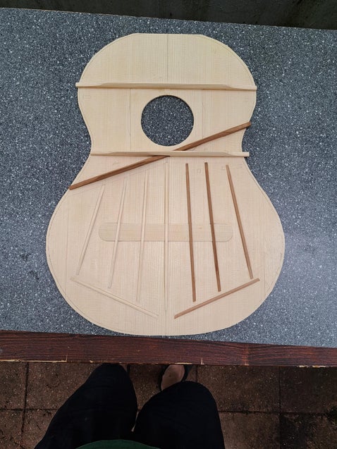 A new challenge. Guitar #7 will have "lattice bracing" instead of "fan bracing". The bracing will be wood only, no carbon.