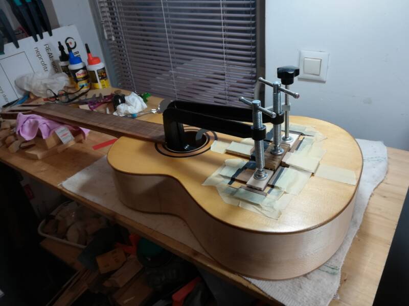 Izdelava zvočne plošče v rahlem radiusu... V soleri pred lepljenjem zvočne plošče in stranice
