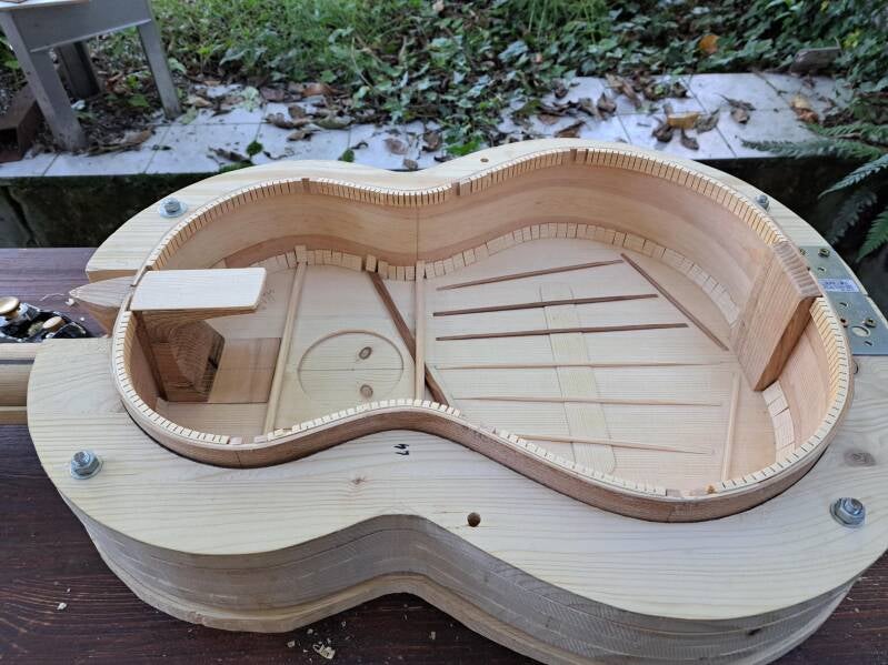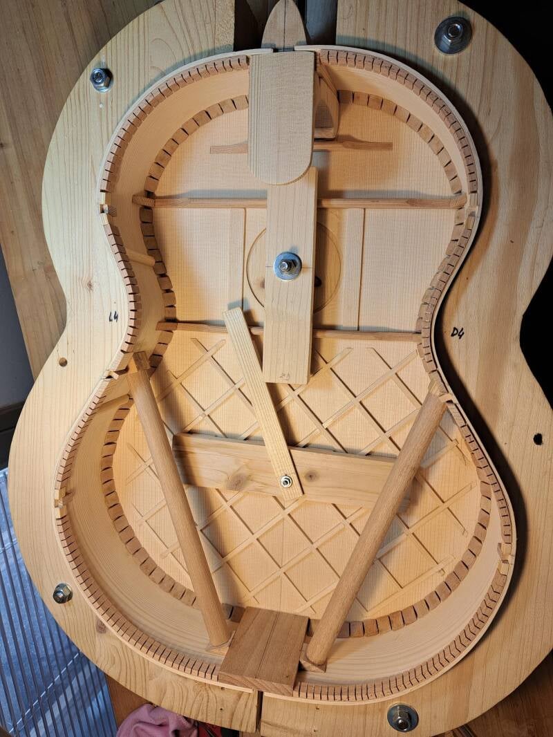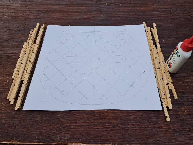A new challenge. Guitar #7 will have "lattice bracing" instead of "fan bracing". The bracing will be wood only, no carbon.