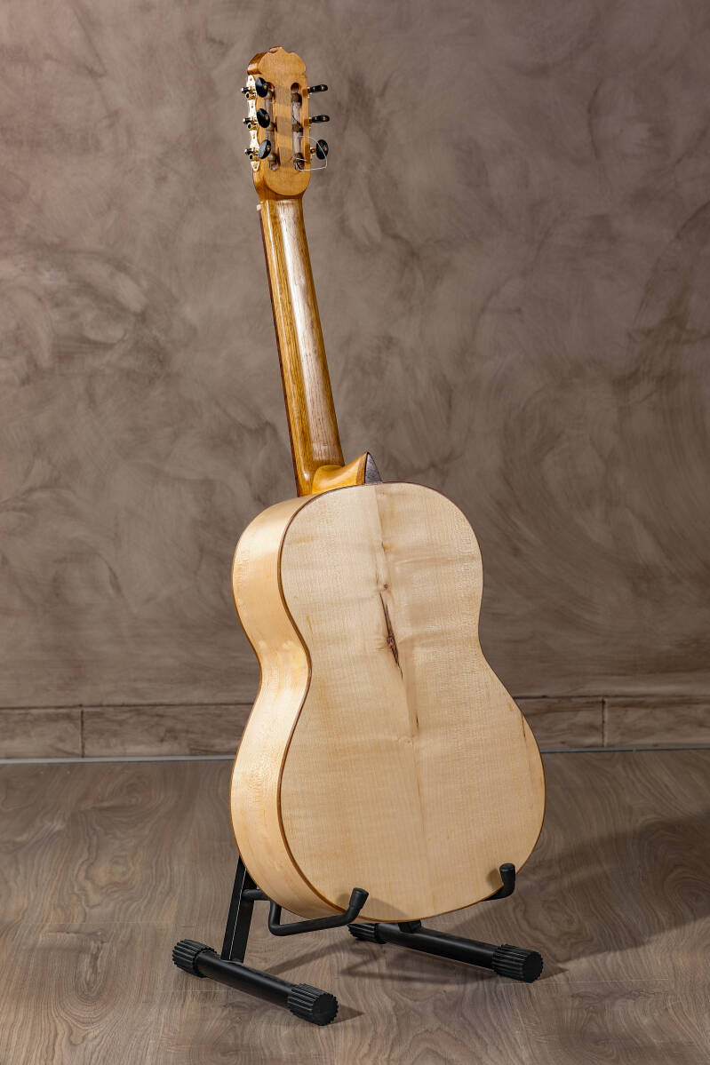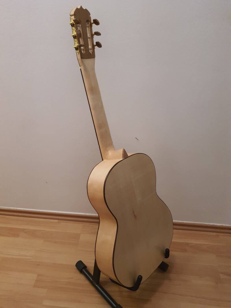 Sound board/Zvočnica - Spruce/Smreka, back and sides/telo - maple/Javor, neck/vrat - oak/Hrast, fingerboard/ubiralka - walnut/Oreh, bindings/robovi -walnut+maple/Oreh+Javor. French polish/Šelak-Francoska politura.